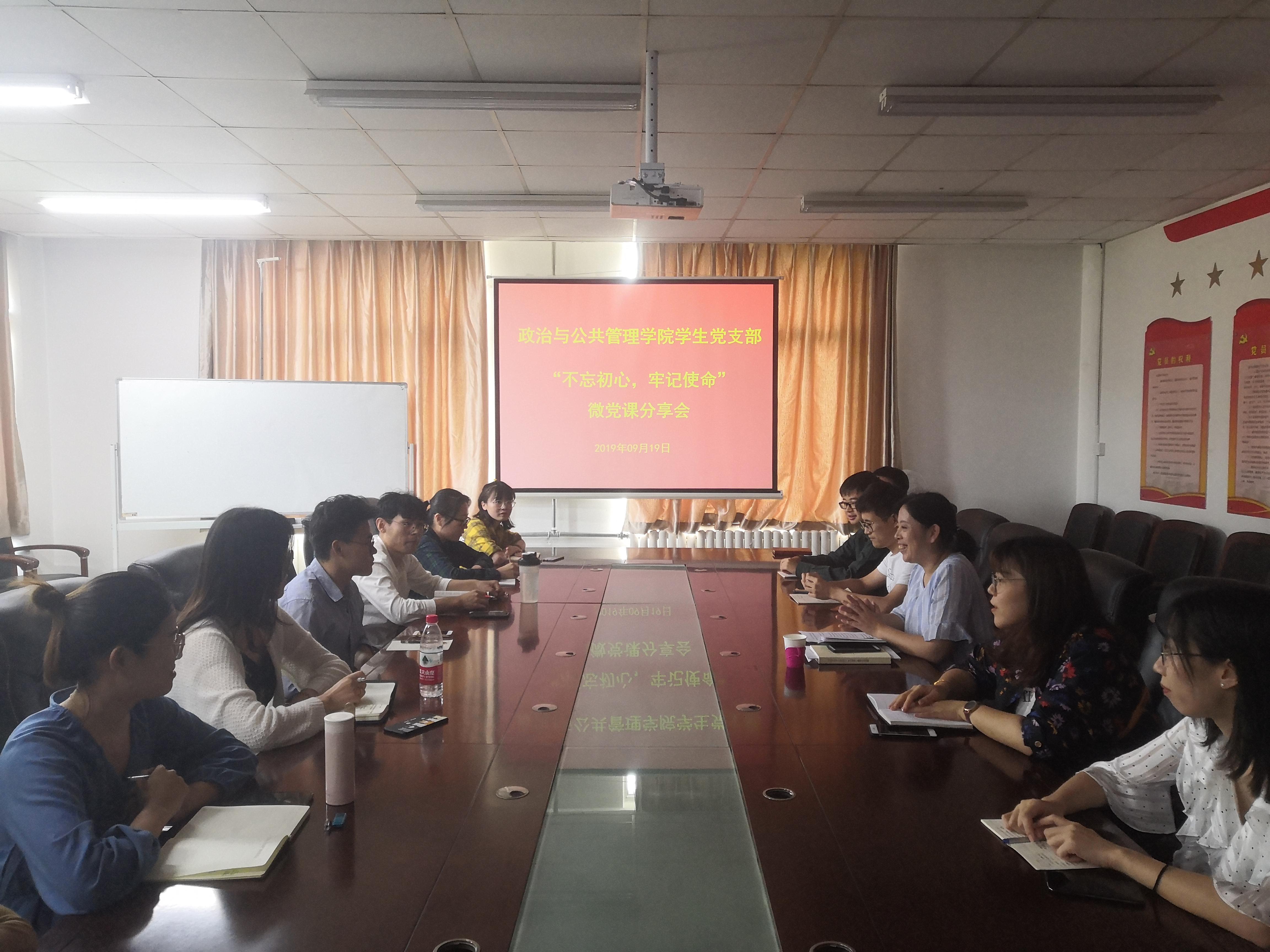 随后,员工党员赵雪瑶、李一分别从国家和个人两个层面进行微党课的展示与分享。赵雪瑶分享的题目为《光辉的历程,伟大的奇迹——中华人民共和国成立70周年》,李一分享题目为《“守初心、重担当、做表率”——学张富清先进事迹,做向上向善“政管人》。微党课展示之后,员工党员们积极分享了自己对于“不忘初心、牢记使命”这一主题的理解和感悟,并表示在日后的学习、工作、生活中,要牢记自己的初心和使命,时刻以党员的标准严格要求自己。