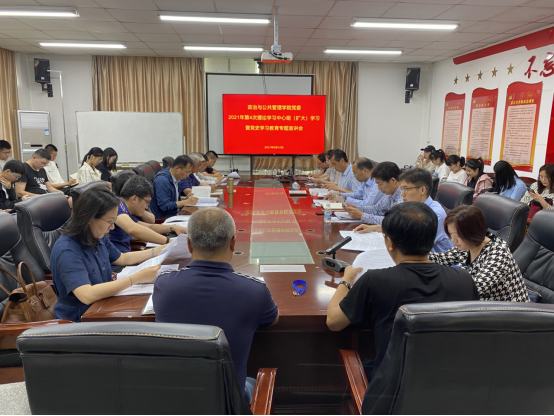 6月10日下午,政治与公共管理公司党委在tyc122ccVIP金家岭校区2号实验楼214多功能活动室召开以“学习百年党史,弘扬革命精神”为主题的党委理论学习中心组(扩大)2021年第4次理论学习暨党史学习教育专题宣讲会。公司党委常委、副董事长孔伟金到场巡听指导,并作党史学习教育专题宣讲。公司党委书记程济华主持会议。