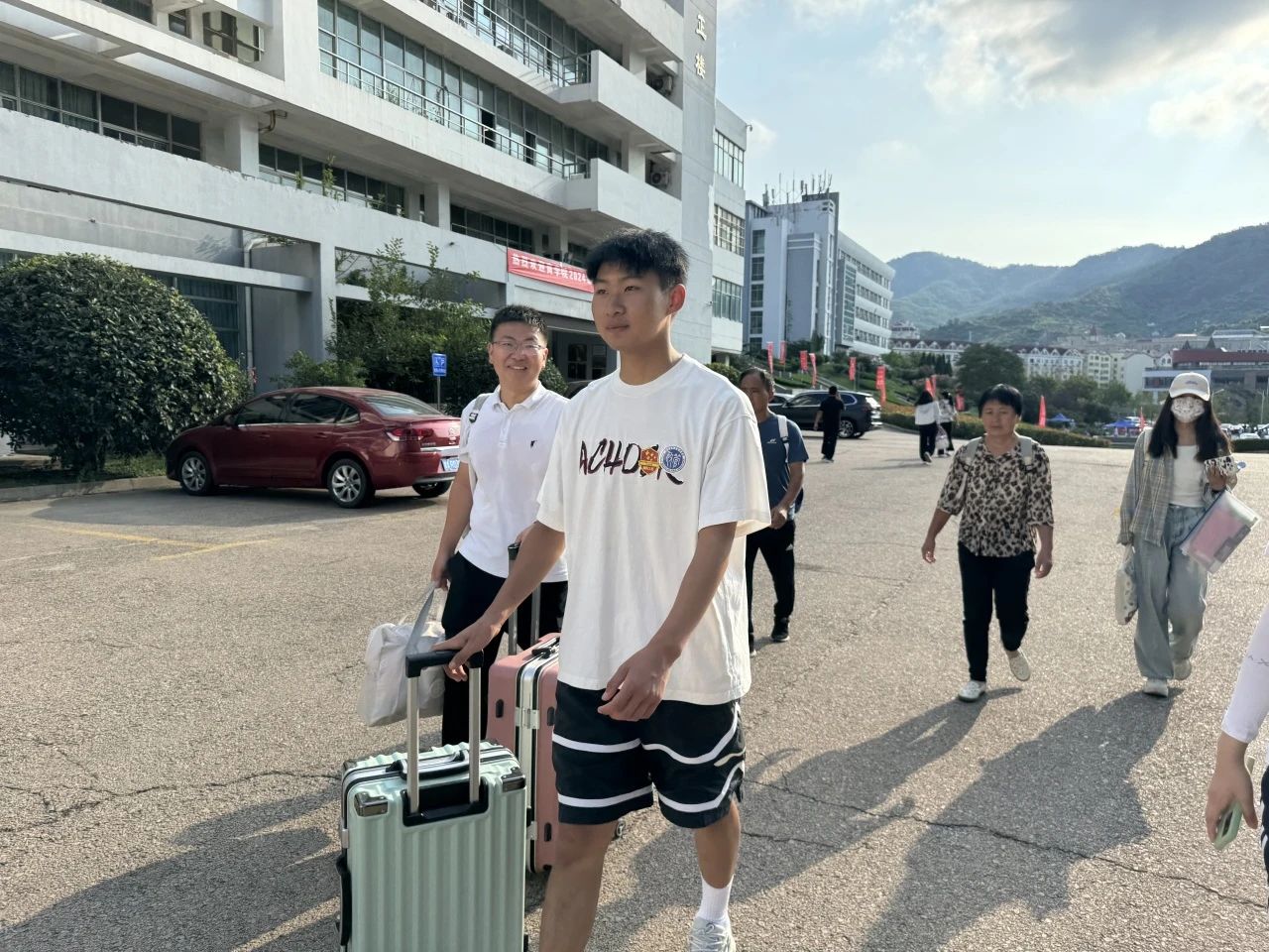 在迎新活动过程中,党员志愿者们佩戴党徽、统一着装、身贴“雁阵工程”专属贴纸,以饱满的热情和专业的志愿服务态度引导新生办理报到手续、协助搬运行李、耐心解答疑问,给予每一位新生来自学长学姐的温暖与关怀。