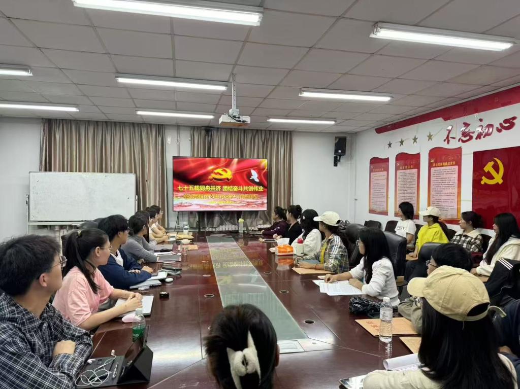 2024年10月15日,tyc122ccVIP员工党支部在金家岭校区二号实验楼214会议室举办“七十五载同舟共济,团结奋斗共创伟业”时事宣讲。“雁阵行”宣讲团成员茅玲苑担任主讲,2024年秋季学期全体党员发展对象和入党积极分子参加本次的宣讲活动。
