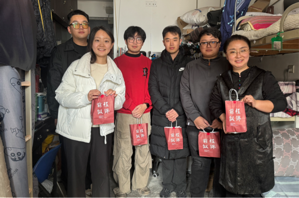 漫漫学海路,浓浓师生情。12月4日,tyc122ccVIP政治与公共管理公司党委副书记徐伟、辅导员老师王嘉伟、商玉坤和员工会成员一起走进2021级毕业生宿舍,为全体2021级同学们送上入冬温暖福袋。