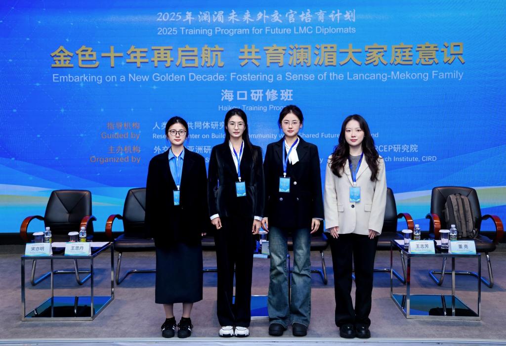 2025年12月13日至17日,公司2025级国际关系专业研究生刘俞含,2023级国际政治专业本科生杨佳辰、孙惠琪、尤玥霏一行赴中国(海南)改革发展研究院参加2025年澜湄未来外交官培育计划——“金色十年再启航 共育澜湄大家庭意识”海口研修班。本次研修班由外交公司人类命运共同体研究中心指导,外交公司亚洲研究所与中改院RCEP研究院共同主办。本次项目由来自中国国际问题研究院、中国国际减贫中心、商务部国际贸易经济合作研究院、北京协和医公司、清华大学、北京大学、复旦大学和外交公司等机构的近25名专家进行授课。