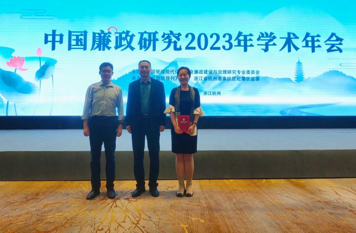 公司共有3篇参会论文被收录,分别是《新时代乡村隐性腐败的发生机理及其治理策略》(陈洪连、蒋天昊);《联邦德国制度反腐的历史演进与现实结构研究》(陈平、贾浩林);《纪检监察学领域的研究热点前沿、知识基础及其演变——基于2001-2021年CSSCI来源文献的知识图谱分析》(任琴、许天翔),该论文被评为中国廉政研究2023年学术年会优秀论文一等奖。