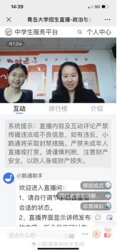 6月18日,副经理韩庆娜与公共管理系副主任胡晓茜在齐鲁频道开展本科招生直播宣传活动,实时在线观看与互动人数达到1.2万余人次。韩庆娜首先播放公司宣传片,然后从团队力量、专业设置、招生分数和奖助学金等方面简要介绍政管公司的基本情况。接下来,胡晓茜和韩庆娜分别针对行政管理专业、公共管理数据科学创新实验班和国际政治专业的具体情况,从学科优势、特色培养和课程体系等方面,结合员工培养的具体案例进行详细介绍。最后,两位老师与直播间员工进行互动并为广大学子送上祝福。