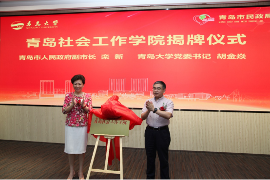 致辞结束后,栾新副市长、胡金焱书记共同为青岛社会工作公司揭牌。