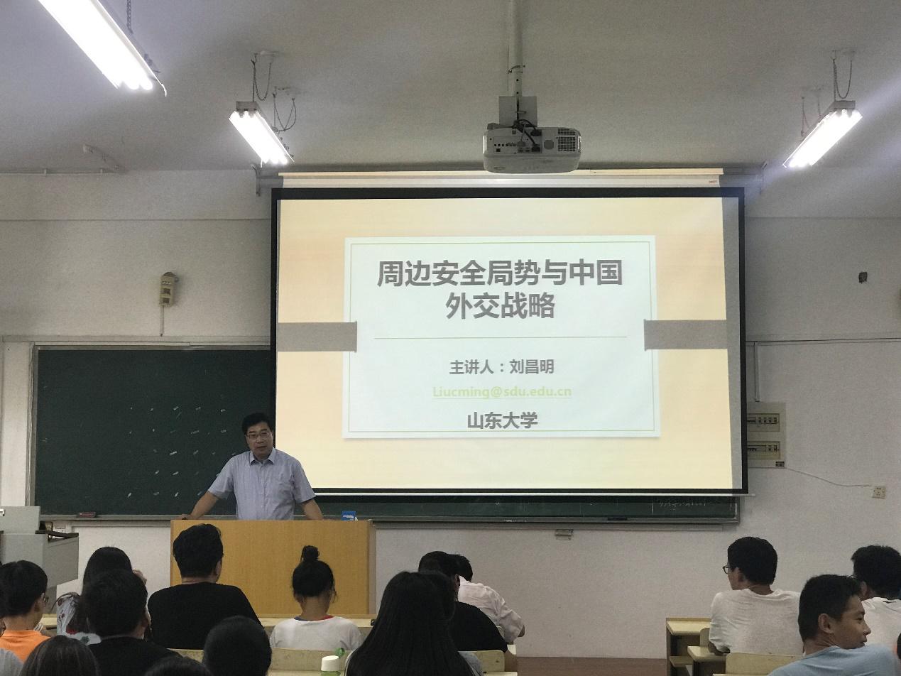 9月6日下午,山东大学政治学与公共管理公司副经理刘昌明教授应公司邀请,在金家岭校区西院二号实验楼304教室向师生们作了题为《周边安全局势与中国外交战略》的学术报告。这是公司夏季学期高端学术报告的第6场,李广民经理以及相关师生70余人参加了此次报告会。