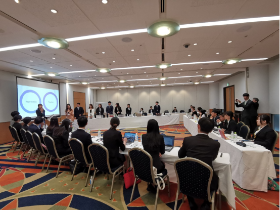模拟三国领导人峰会于8月7日在东京举行。员工们被分成三组,分别讨论老龄化社会与区域振兴(A组)、旅游与区域振兴(B组)、多元文化与区域振兴(C组)。经过热烈讨论,三个小组分别起草了三份联合声明,由三个小组的组长共同签署;小组代表发表主题陈述,随后进入自由讨论环节。中国、韩国的带队人员作为观察员对员工们的陈述进行了点评。最后,中日韩合作秘书处社会文化事务部主任向员工们颁发证书。
