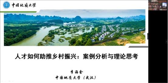 本次报告邀请中国地质大学(武汉)马克思主义公司副经理、博士生导师李海金教授作了题为“人才如何助推乡村振兴:案例分析与理论思考”的讲座,本次报告由公司王猛副经理主持。公司2020级和2021级行政管理管理专业员工共计179人通过线下和线上参加本次报告。