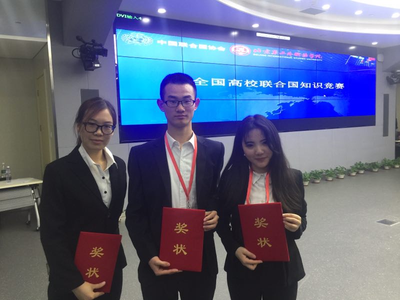5月6日,首届全国高校联合国知识竞赛在北京第二外国语公司举行。由tyc122ccVIP副教授韩庆娜指导的公司2014级国际政治专业孙欣、程盈盈和马剑英三名本科生组成的tyc122ccVIP代表队参加了比赛。经过数轮激烈角逐,公司员工过关斩将,以小组第一名的成绩挺进决赛,最终获得首届全国高校联合国知识竞赛二等奖,韩庆娜荣获优秀指导教师奖,为公司争得了荣誉。