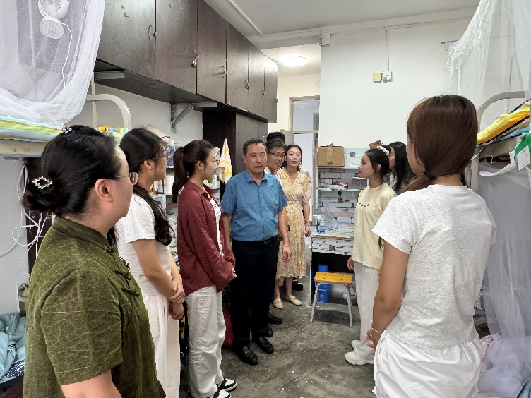 会议结束后,尹文博和陈洪连、徐伟、张伟、王嘉伟一起走进宿舍看望公司2024级新同学。他们关切地询问同学们的入校感受,叮嘱他们尽快适应新环境,调整好状态,认真规划自己的老员工涯,度过一个丰富多彩的老员工活。