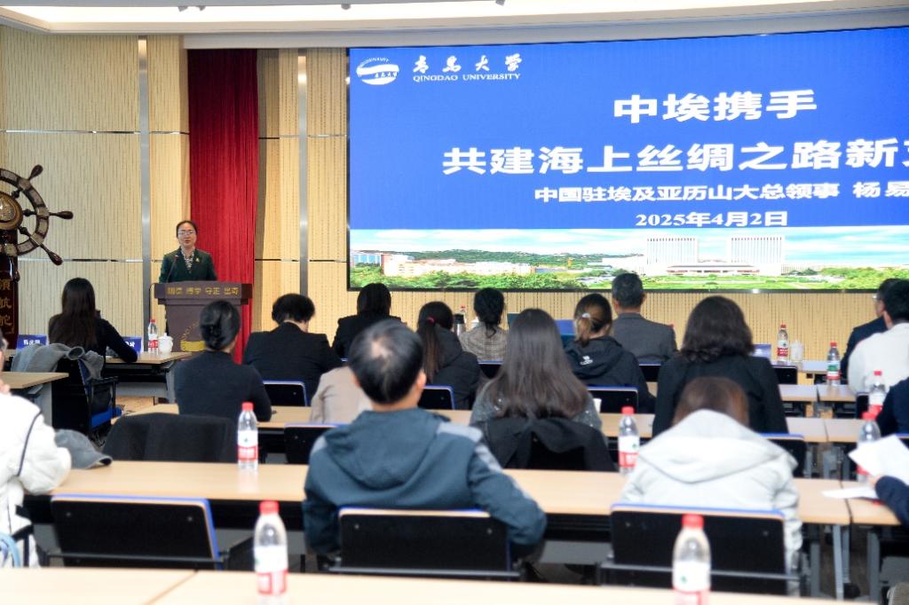 4月2日下午,公司在浮山校区会议中心404会议室举办“外交大讲堂”活动,中国驻埃及亚历山大总领事杨易作了题为“中埃携手,共建海上丝绸之路新支点”的学术讲座。公司党委常委、副董事长何燕主持讲座。青岛市委外办副主任王祥瑜、市委外办欧洲非洲处处长于钰、市委外办欧洲非洲处王鲁琦、公司党委书记尹文博、副经理韩庆娜等有关部门负责人出席讲座。公司教师及国际政治专业本科生、国际关系专业研究生代表参加讲座。