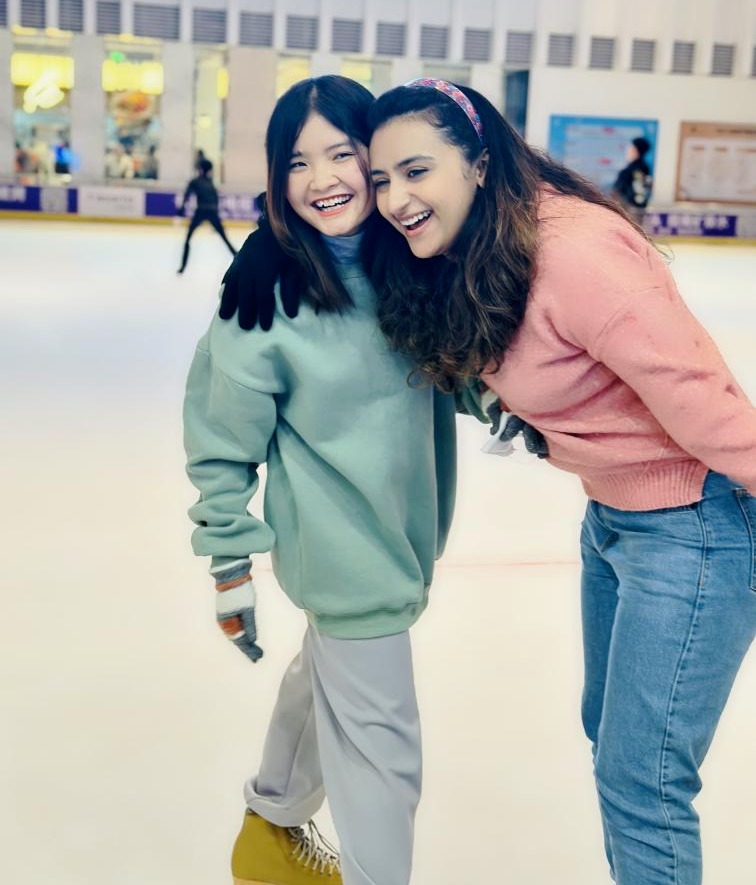 虽然我们来自不同国家,拥有不同的文化习俗,但是我们像家人一样对待彼此,互相照顾,分享生活中的喜悦与感动。与你,这并不是我们的初次见面,可这次再相见,毕竟是我第一次背井离乡、异国求学。第一次这么久的离开家人,偶尔难免会感到生疏与孤独。可正是因你而结识的这些新朋友,给了我家人般的温暖,陪伴我度过了一个热热闹闹的圣诞节,也陪伴我体验了从未做过的事——滑冰、滑雪。现在回想起来,耳边还回荡着朋友们庆祝圣诞节时的欢声笑语,也回响着自己鼓足勇气在滑雪场从高坡往下滑时的怦怦心跳和迎面而来的阵阵寒风。